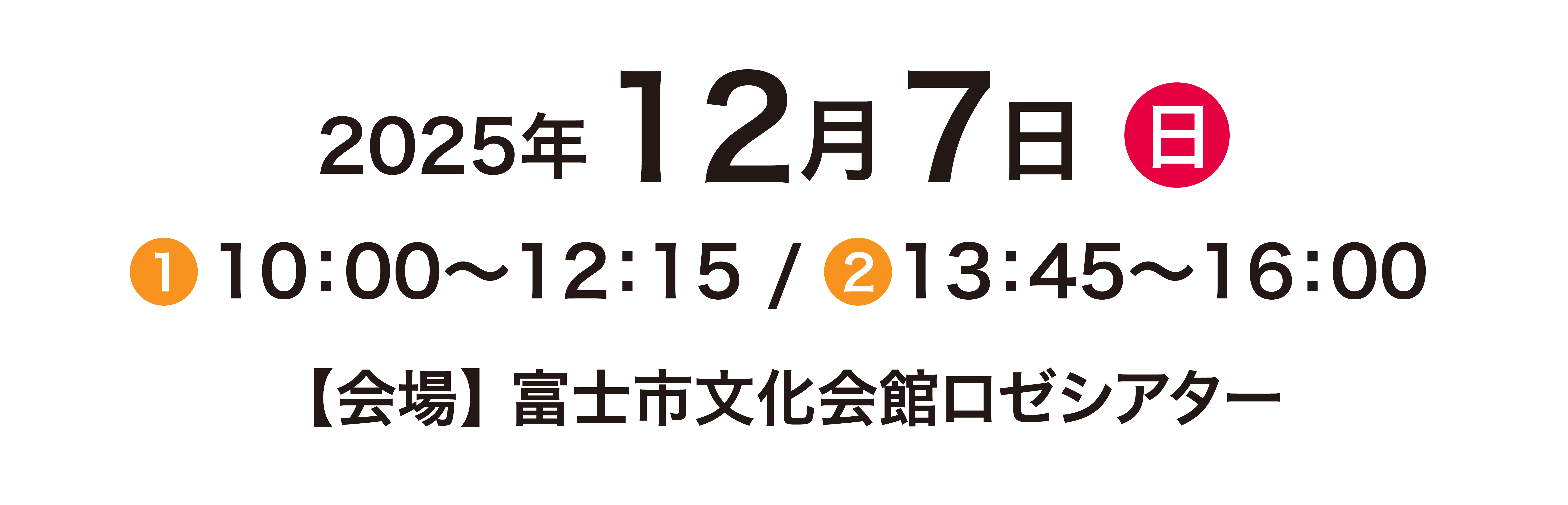 | [日時] | 12月7日(日) ①10:00~12:15 ②13:45~16:00 ※開始時間の15分前より受付開始します。 ※お子さまの進行により15〜30分終了時間が延びる場合があります。 |
